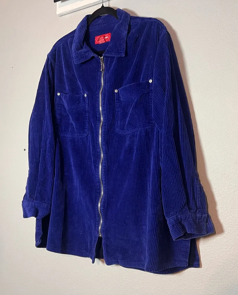 Venezia Jeans Corduroy Zip Up Shirt Jacket Shacket Blue Size 18 20 Cotton - $37 - From Kathryn
