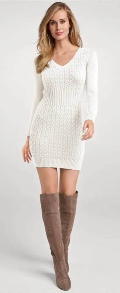 ✨Venus Cable Knit Sweater Dress Size: Medium Color: Cream Material: 100% Acrylic All the elemen... Show more