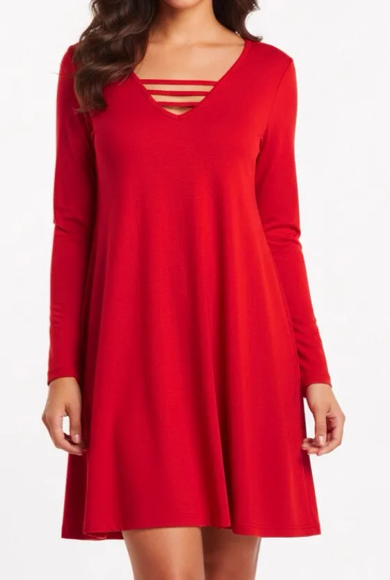 Venus Red Knit A-line Swing Mini Dress ~ super comfy and soft knit ~ unlined ~ curved hem ~ stretch... Show more