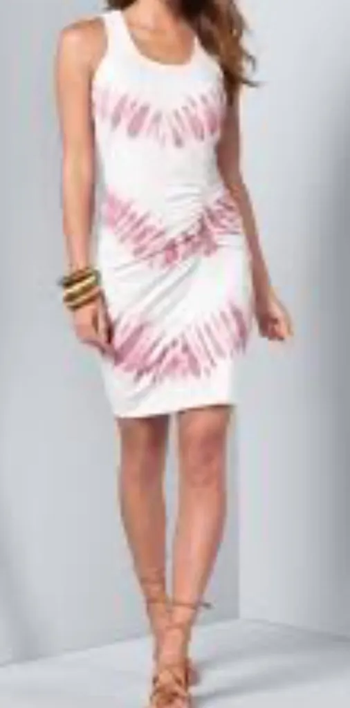 Chic mini dress with pink and white pattern. Ideal for casual outings. Stylish and comfortable. P2P... Show more