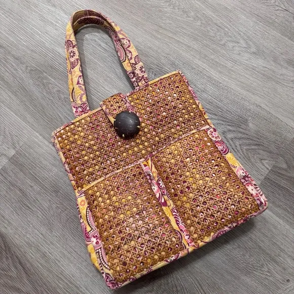Vera Bradley Bali Tiki Wicker Rattan Woven Straw Bag Purse Gold Vacation Tote Yellow - $53 - From Hannah