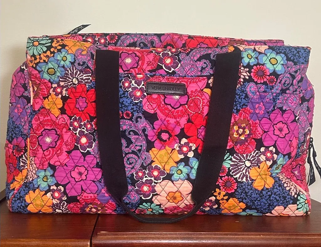 Vera Bradley carryon bag with suitcase roller bag handle strap and laptop protector. Gently used. No... Show more