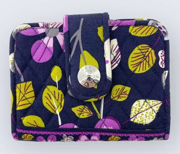 Vera Bradley Floral Nightingale Purple Green Floral Snap Bifold Wallet. About 5" x 4". Four card slo... Show more