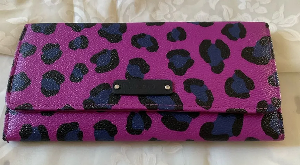 Chic clutch with vibrant cheetah pattern. Eye-catching accessory for any ensemble. Front magnetic cl... Show more