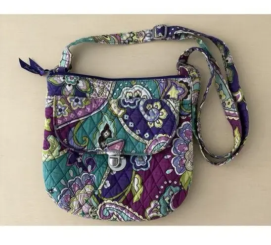 Vera Bradley Purple Heather Paisley Saddle Crossbody Hipster Bag Purse * 9 1/2" x 10" * Lots of poc... Show more