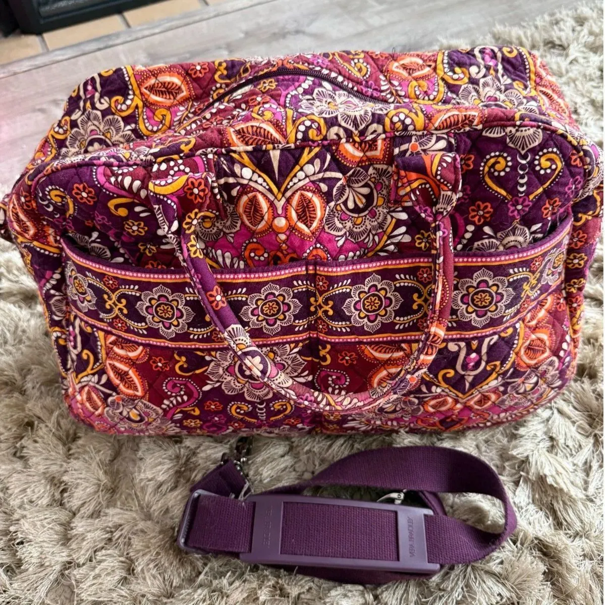 Vera Bradley safari sunset weekender duffle bag Comes with crossbody strap Front zip pocket and open... Show more