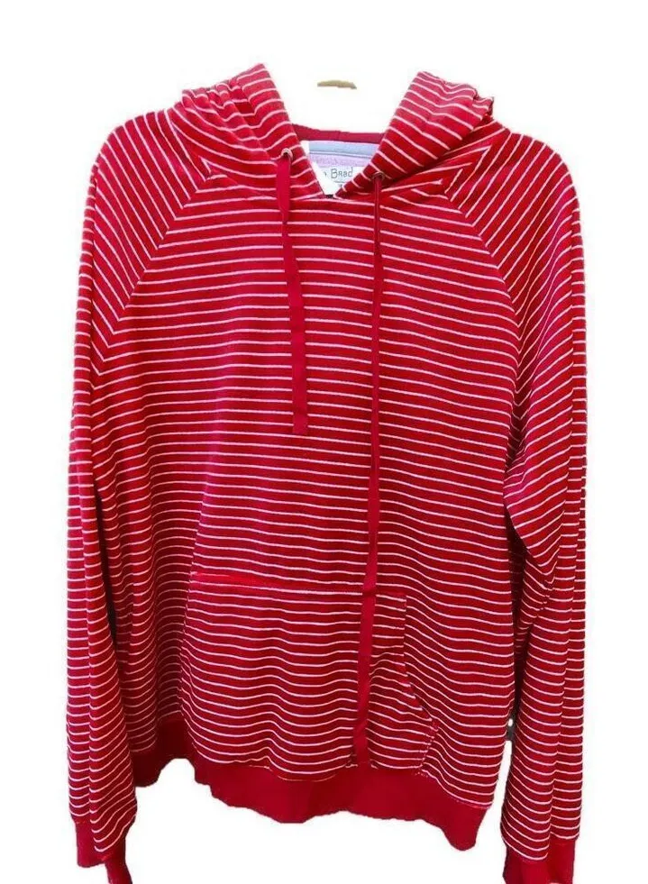 Vera Bradley size L striped velvet hoodie with kangaroo pocket. Logo on sleeve cuff. Hood inside is... Show more