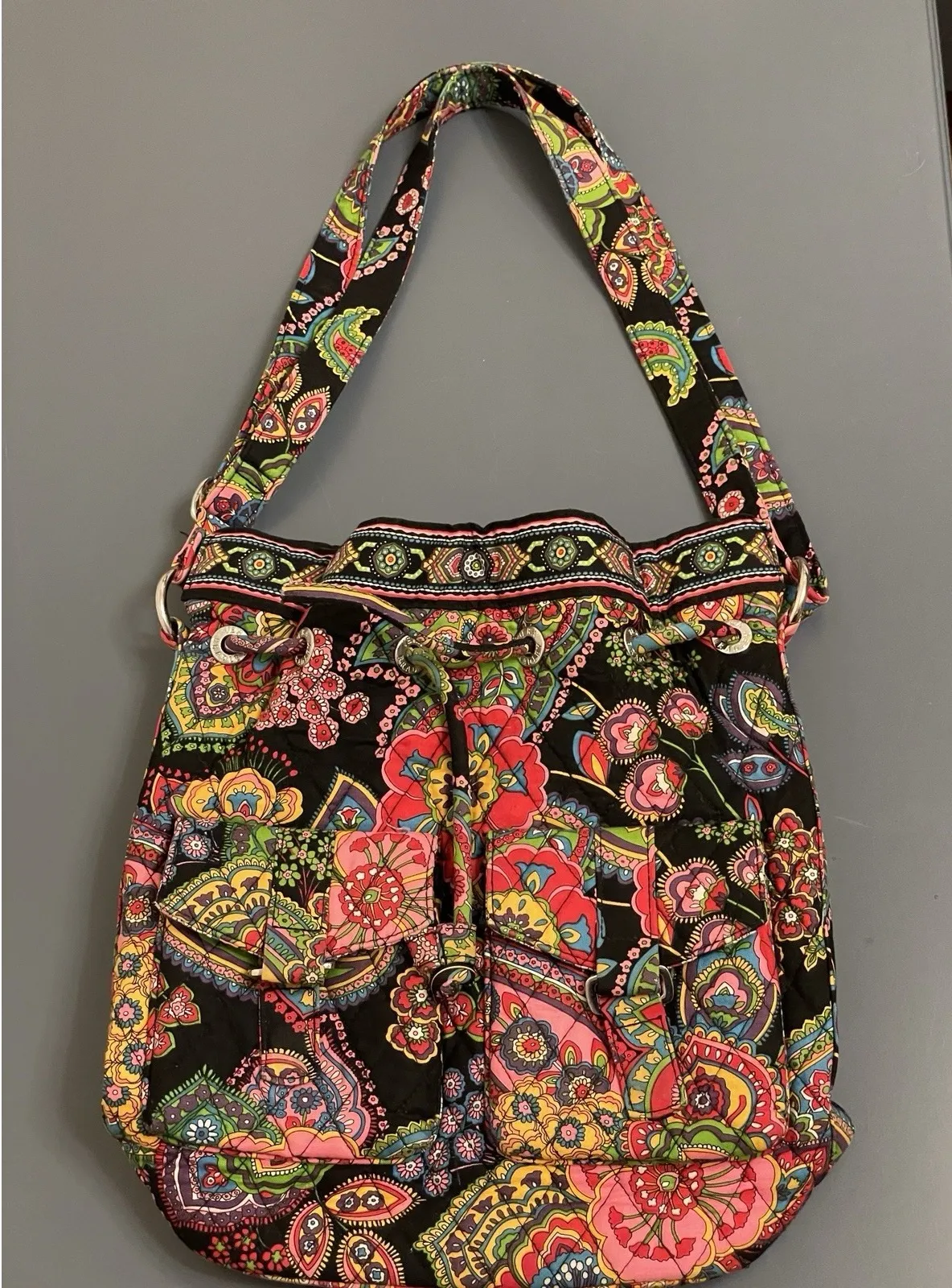 Vera Bradley Symphony in Hue Bucket Bag/Purse/Handbag. Quilted Fabric. Drawstring closure pulls shut... Show more