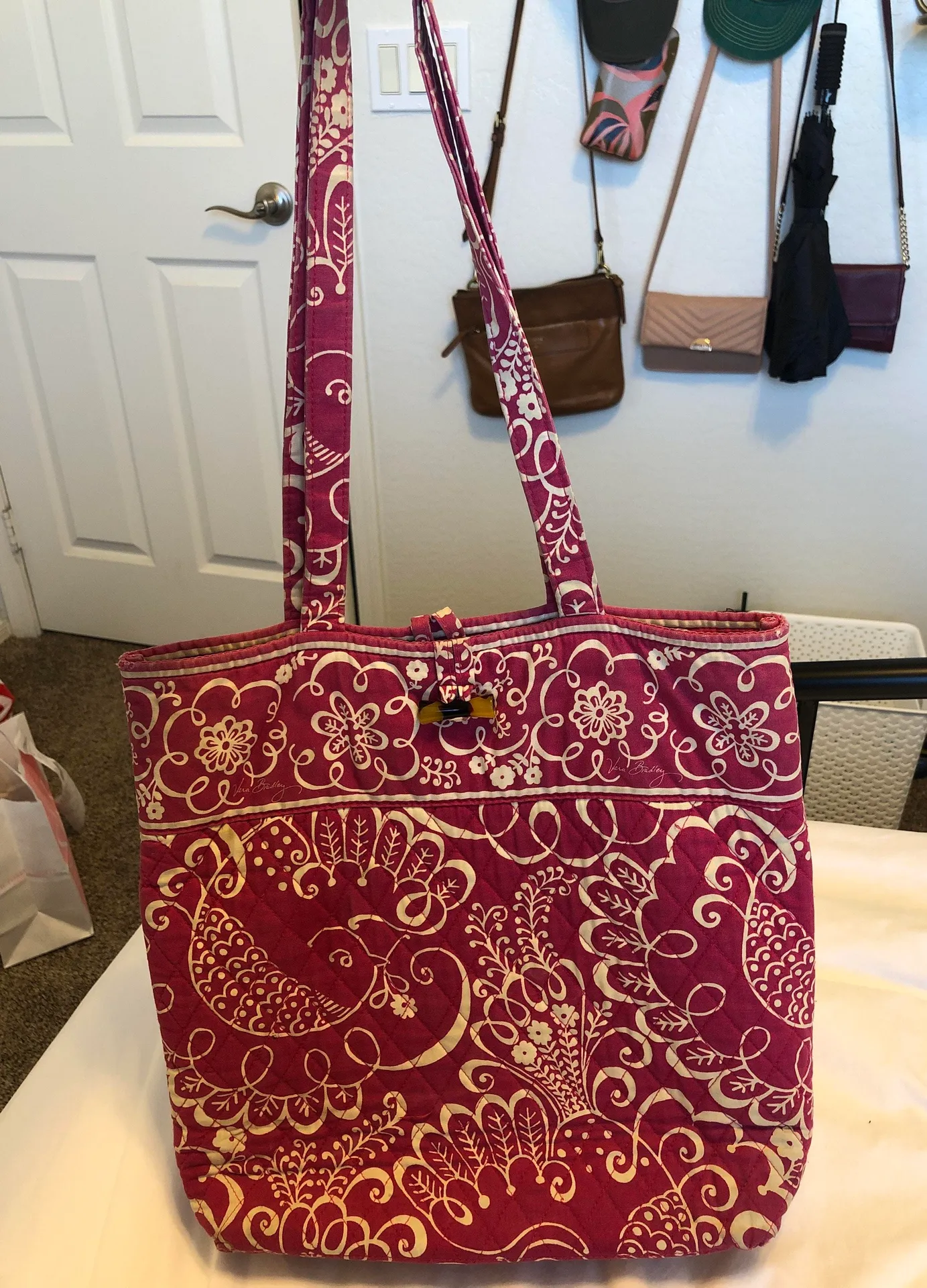 Old design Vera Bradley tote! In used condition with some discoloration on the straps and some damag... Show more