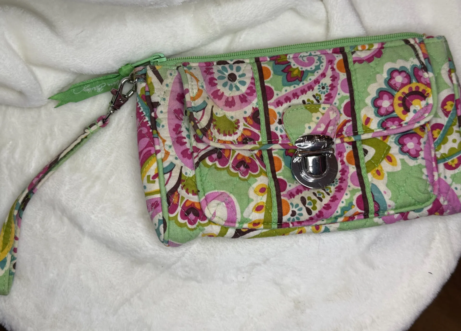 Colorful floral paisley wristlet. Features a silver clasp. Perfect for adding a pop of color. This i... Show more
