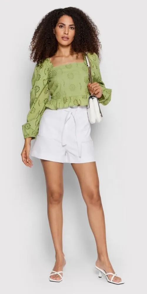 Vero Moda Top made of 100% Cotton Color: olive green Features eyelet embroidery and has a square n... Show more