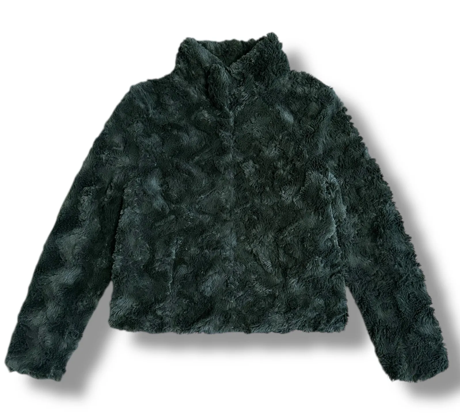 Stay cozy and chic in this Vero Moda “VMCurl” High Neck Short Faux Fur Jacket — the perfect blend of plush comfort and elevated style. Crafted in a rich deep olive green hue, this jacket features ultra-soft faux fur with a luxe, rippled texture. The high neck design provides warmth and structure, while the hidden snap closure ensures a clean, minimalist silhouette. Fully lined in satin for smooth wear. ~ Size Small | 100% Polyester (Shell & Lining) | Style No. 10203330 | Faux Fur | Scandinavian Design | Dry Clean | Made in China | Approximate Measurements (Laid Flat): Bust (Armpit to Armpit): 18”, Length (Shoulder to Hem): 21”, Sleeve (Shoulder to Cuff): 25” | Pre-Owned – Excellent condition *Original retail price $99 #veromoda #fauxfurjacket #olivegreen #teddycoat #plushjacket #winterstyle #minimalistfashion vero moda faux fur jacket, olive green coat, short plush jacket, teddy jacket, boxy cropped coat, winter outerwear, high neck jacket, minimalist coat, scandinavian fashion, soft faux fur, green teddy jacket, cold weather coat