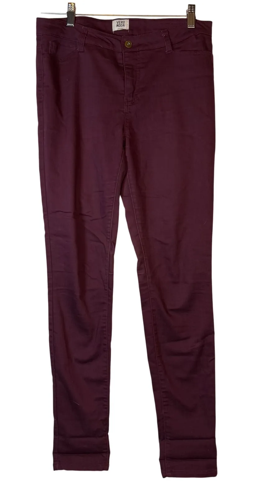 Discover your new favorite staple with these Vero Moda burgundy skinny jeans. Designed to flatter, these trousers offer a sleek silhouette that moves with you. The rich burgundy hue adds a touch of sophistication, perfect for transitioning from day to night. Elevate your everyday style or dress them up for a chic evening out. Ideal for brunch with friends, a casual workday, or a stylish date night. Style: Jegging Department: Women Waist Size: 31 in Type: Jeans Accents: Button, Zipper, Logo Features: Pockets, Stretch Fit: Slim Pattern: Solid Rise: Mid (8.5-10.5 in) Fabric Type: Denim Material: Cotton Blend, Spandex Closure: Button Season: Spring, Fall, Summer Pocket Type: 5-Pocket Design, Coin Pocket, Slash Pocket Keywords: Vero Moda, burgundy jeans, skinny trousers, womens denim, colored jeans, slim fit pants, fall fashion, winter wear, casual chic, everyday essential, modern style, wardrobe staple