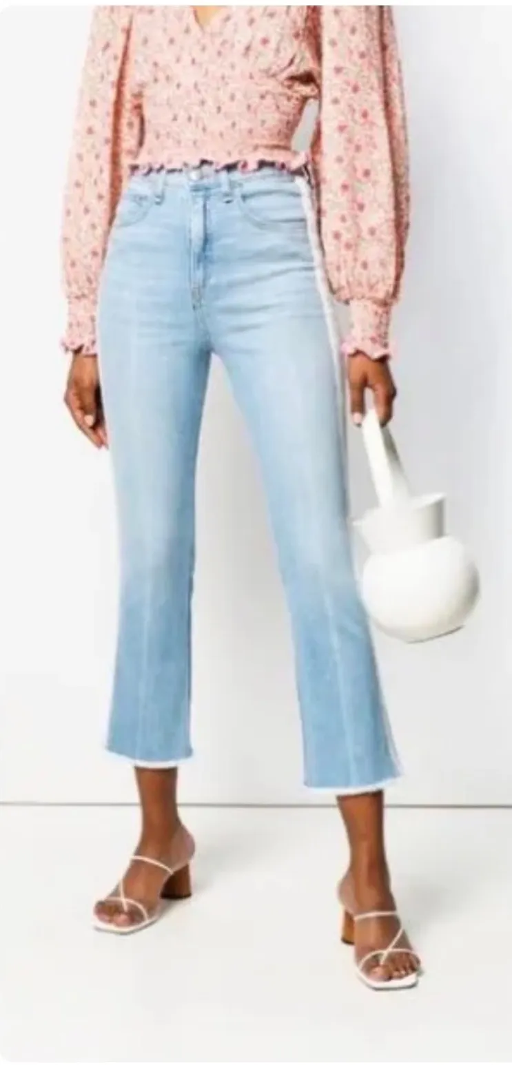 $268 Veronica Beard Carly 11" Kick Flare Jeans Size 25 Side Stripe Crop Fray Hem Excellent preowne... Show more