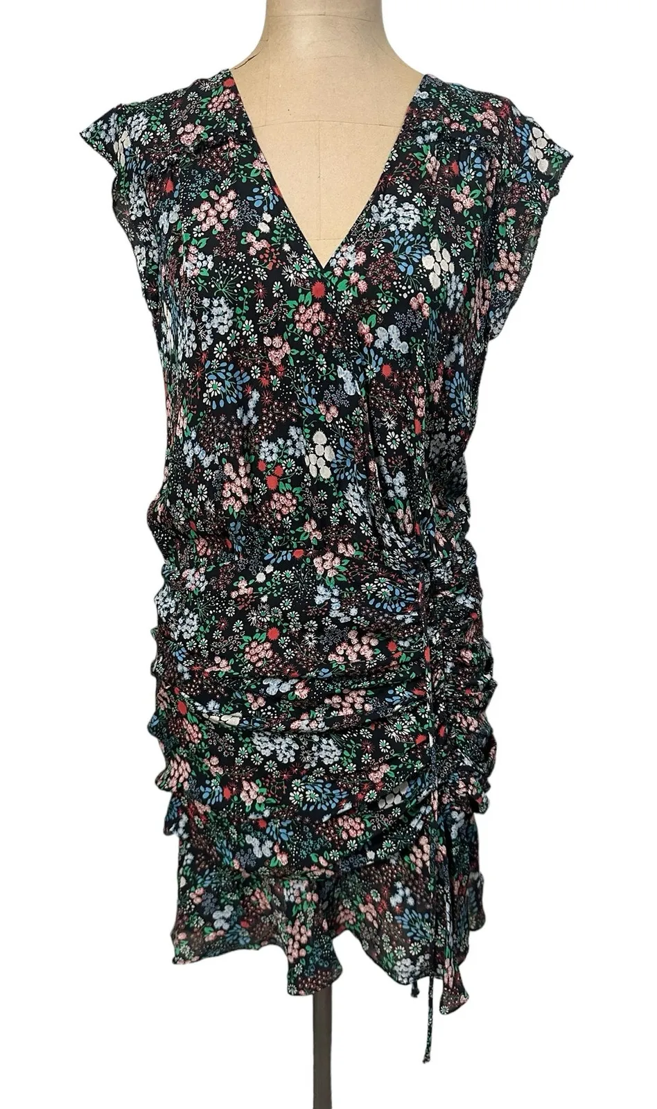 Veronica Beard Floral Ruched Mini Button Up Dress, Like New. Size 10 V neckline Faux wrap front Cap... Show more