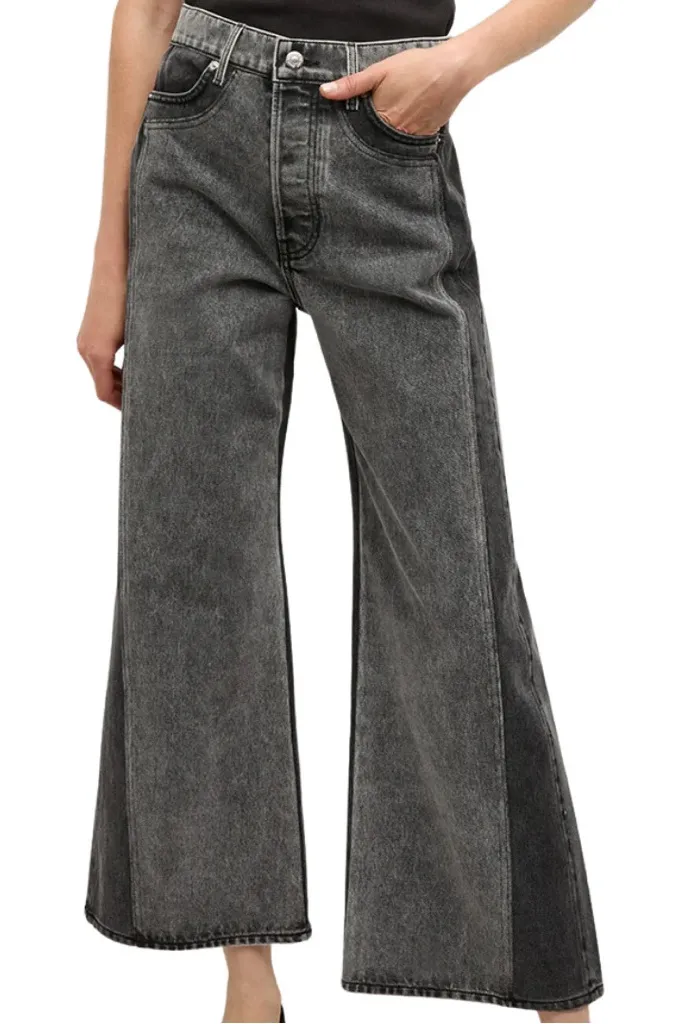 Veronica Beard Taylor Two-Tone Wide Leg Crop Jeans Size 24 in Volcanic Stone Black - $125 - From Valerija