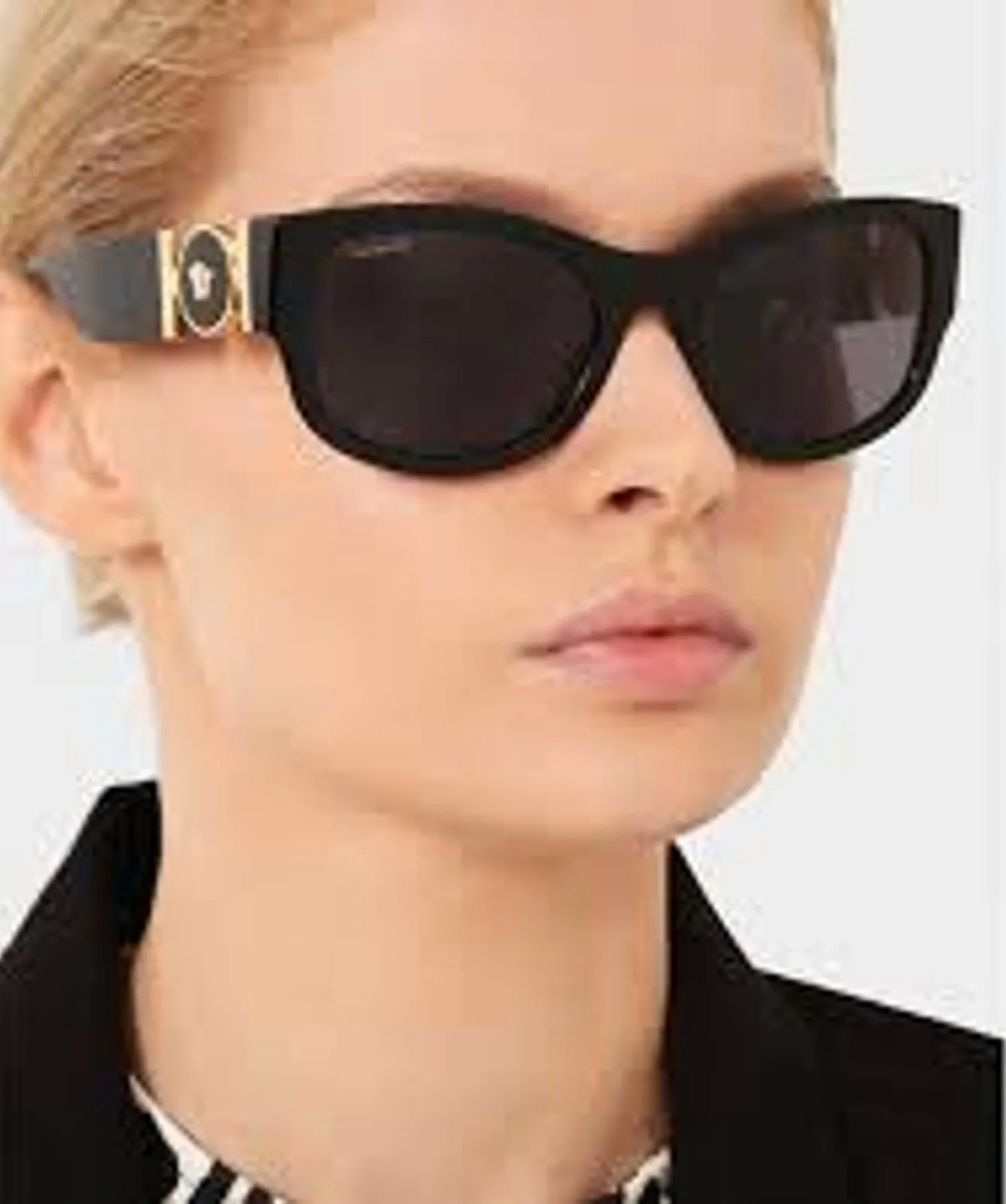 VERSACE Black large lens cat eye sunglasses Pre-owned AS-IS condition See photos for missing medus... Show more