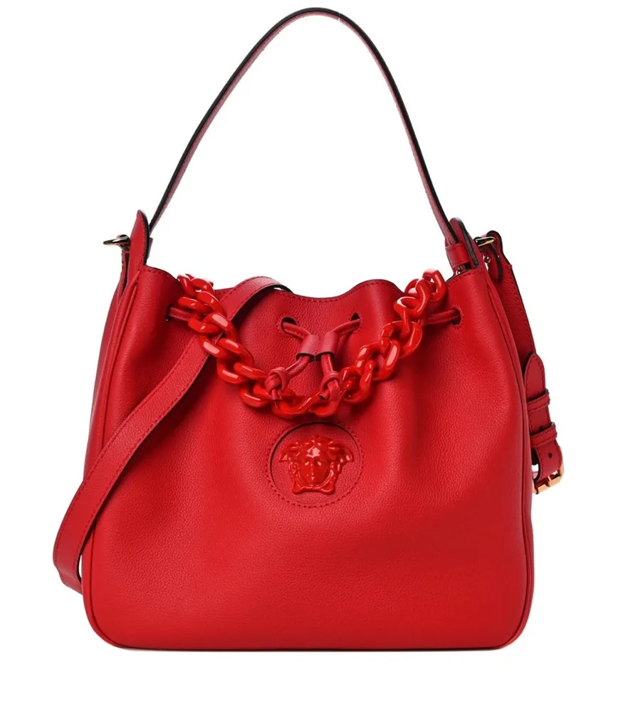 VERSACE Grained Calfskin La Medusa Bucket Bag Red VERSACE Grained Calfskin La Medusa Bucket Bag in... Show more