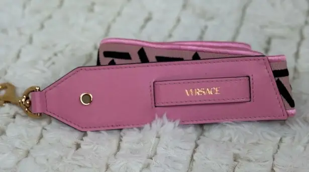 Elegant pink leather strap by Versace. Features a gold embossed logo Authentic Versace crossbody str... Show more