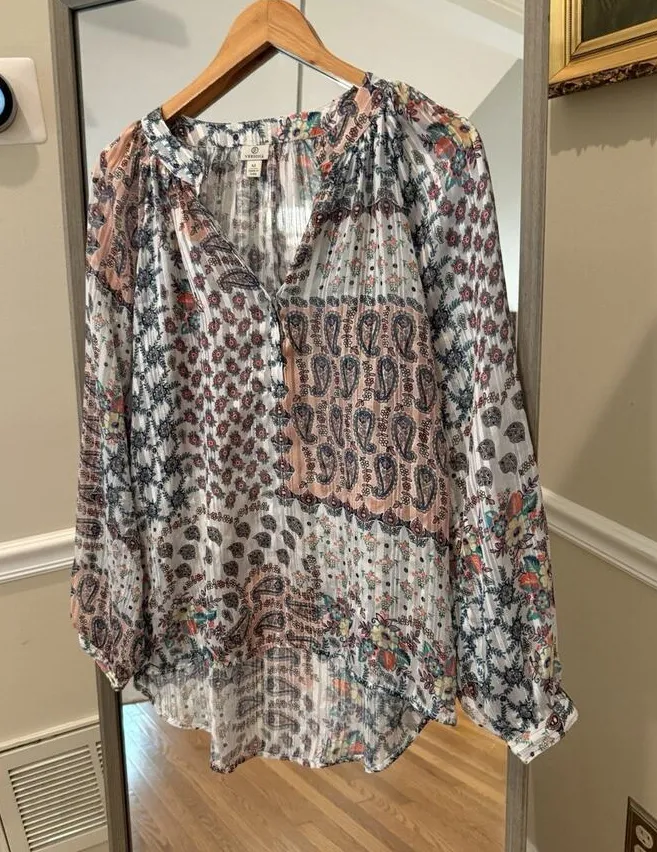 The Versona Top is a stylish women's blouse in size medium, featuring long sleeves and a V-neckline.... Show more