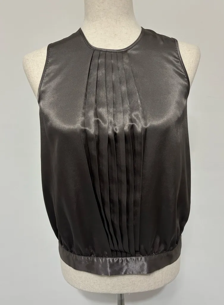 Vertigo Gray Satin Pleated Blouson Sleeveless Blouse Sz XS - $25 - From bat