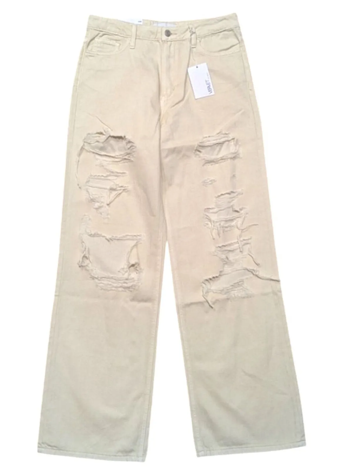 BRAND NEW! Vervet trendy ripped destroyed wide leg jeans in a chic cream shade. Jodie 90's Dad Jean... Show more