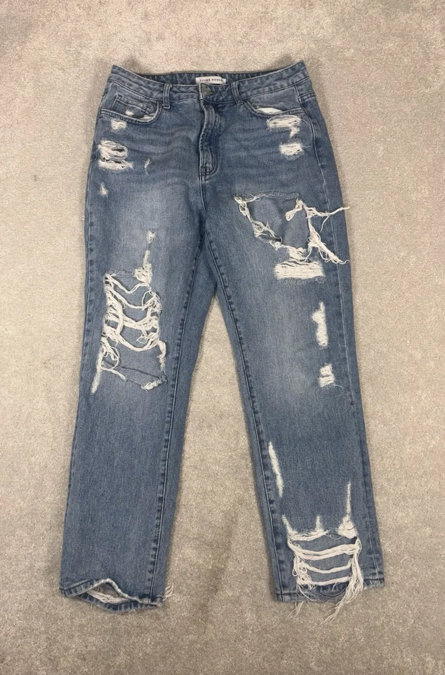 The product is a pair of Flying Monkey boyfriend fit straight leg jeans in size 29. These jeans are... Show more