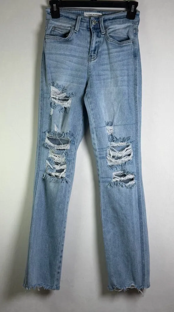 Flying Monkey jeans, high rise jeans, straight leg denim, distressed jeans, raw hem jeans, cropped denim, stretch jeans, light wash denim, Y2K jeans, modern denim, casual chic, street style, minimalist wardrobe, festival denim, everyday jeans, women’s denim