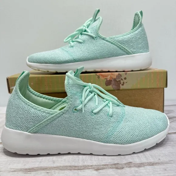 Very G Liliana mint green breathable, lightweight sneakers with subtle metallic highlights. Matching laces, cutout sides, cushioned white soles. Women’s size 9.5. Brand new in original box! Clean, smoke free home and studio. Five star seller. Super fast shipping! Athleisure, sporty, comfy, loungewear, activewear SKU# S098 H34