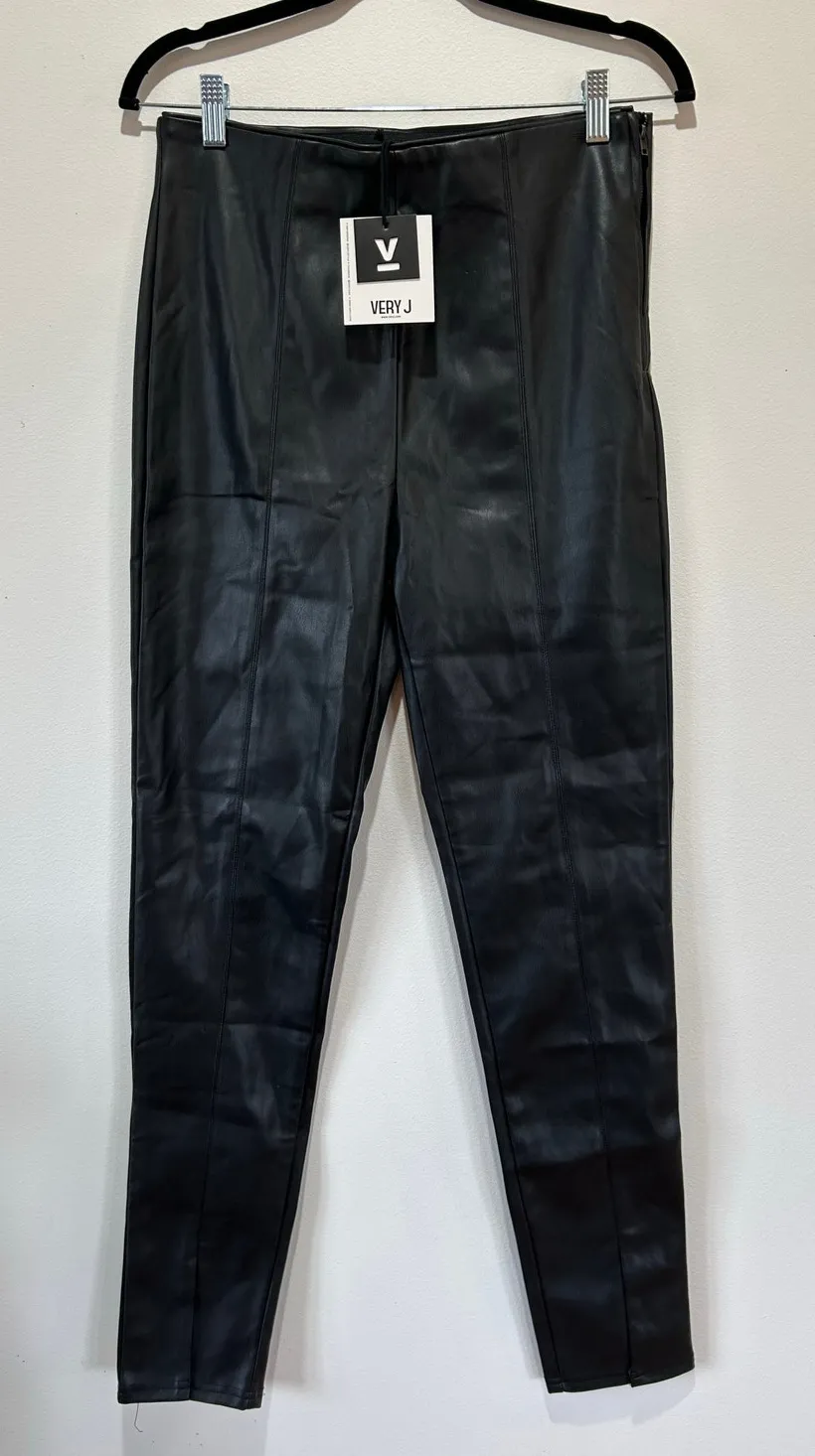 Elevate your wardrobe with these edgy and stylish faux leather moto pants! These pants are new with tags and ready to make a statement. Features: - Sleek faux leather material - Flattering skinny fit - Unique moto-inspired design - Convenient side zip closure - Size: L - Color: Black - Perfect for adding a touch of goth or rock-chic to any outfit These pants are ideal for a night out, a concert, or any occasion where you want to stand out from the crowd. Pair them with a band tee and boots for a complete look. Don't miss out – grab these must-have pants today!