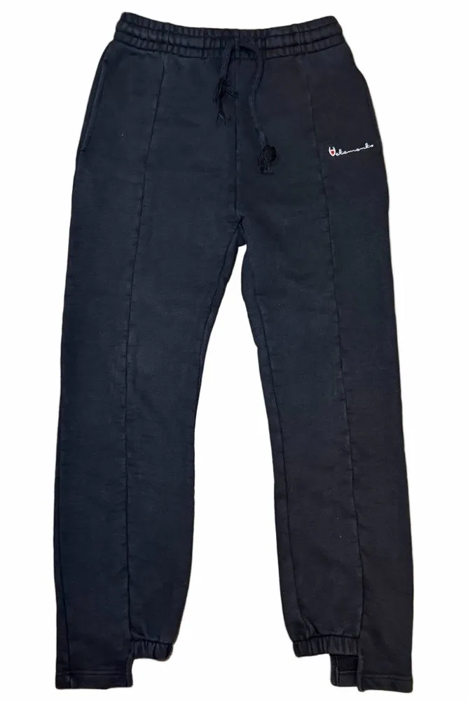 Elevated black joggers by Vetements. Perfect for casual wear. Street wear style. Stylish ankles that are asymmetrical with one side being fitted and the other not. Two front pockets. The drawstrings have unraveled. Please see photos and measurements. SR