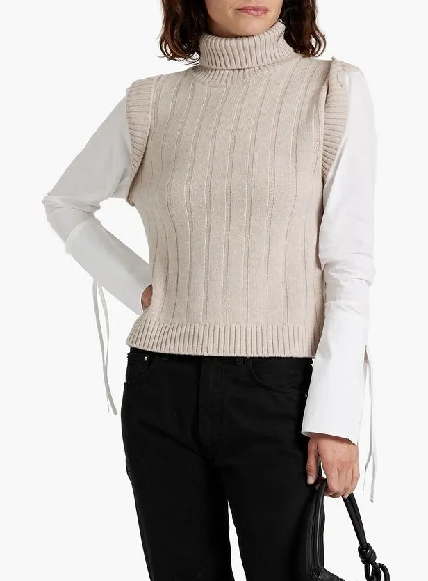 DEREK LAM 10 CROSBY Paola poplin and ribbed wool turtleneck sweater Tan - $100 - From Hailey
