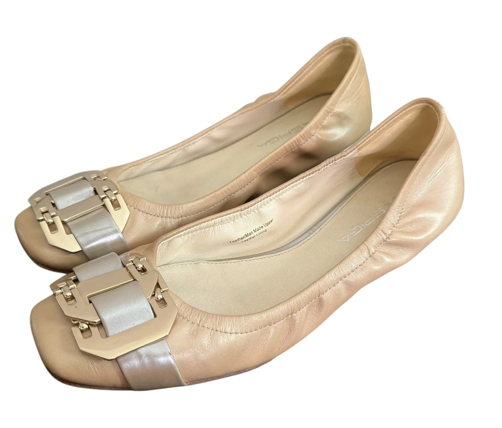 Via‎ Spiga Leather Slip On Ballet Flats Womens Size 6 Square Buckle Shoes Casual Tan - $22 - From Raynika