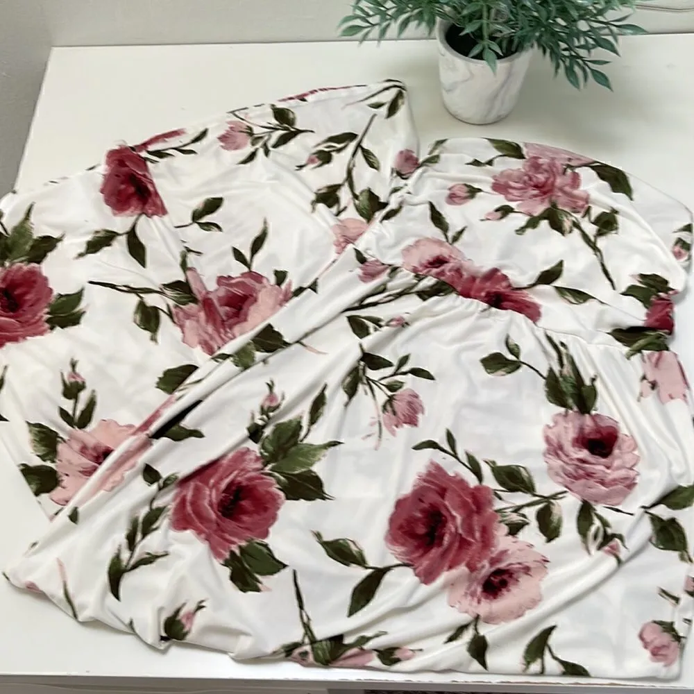 Vibe Sportswear strapless dress. Floral and rose patterns. Size Medium. White - $20 - From Jill