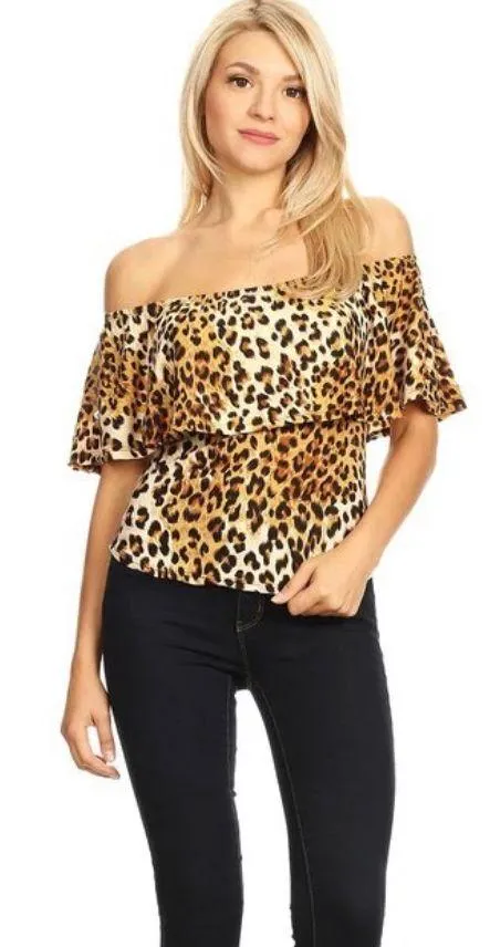 Very nice and comfortable Vibe Sportswear Women's Animal Print Off the Shoulder Ruffle Blouse, Size... Show more