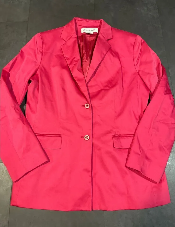 Elevate your professional wardrobe with this stunning Jones New York blazer in a vibrant pink hue. C... Show more