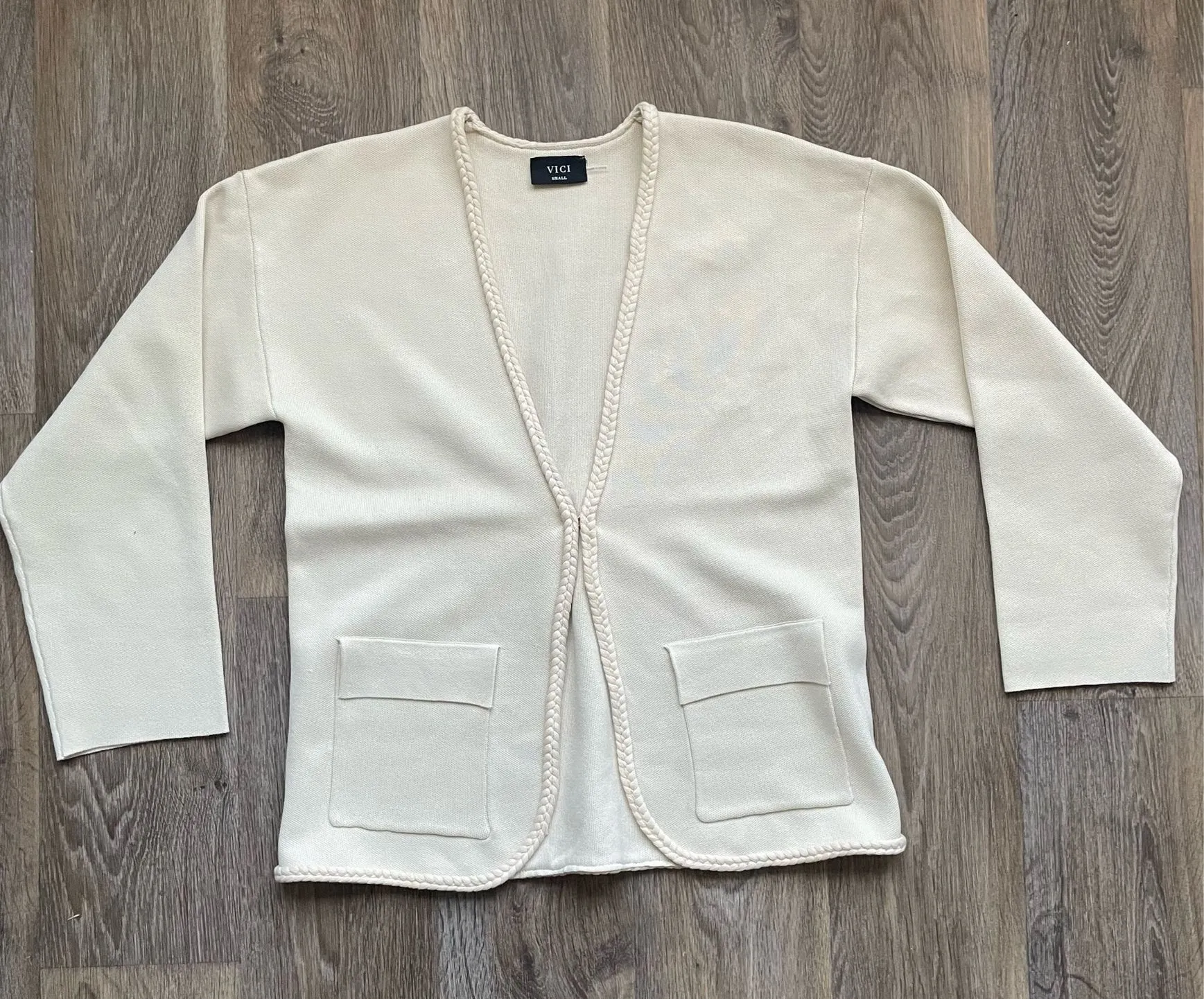 VICI Cream Braided Trim Open Front Knit Cardigan Small Clean Girl Minimalist Tan - $35 (55% Off Retail) - From Katherine