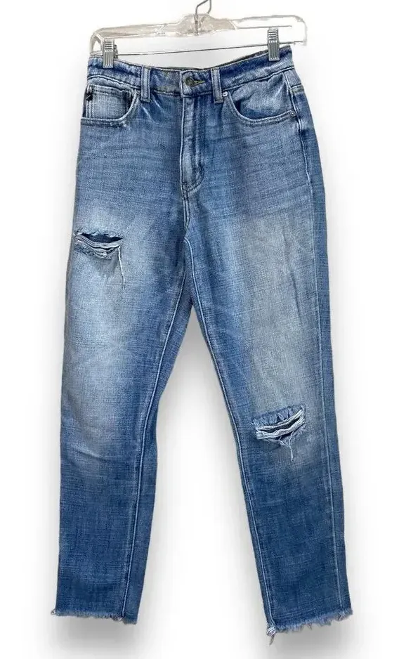 VICI Straight Leg Jeans Light Wash Distressed Raw Hem High Rise Kancan Size 1 24 Blue - $30 - From Therese