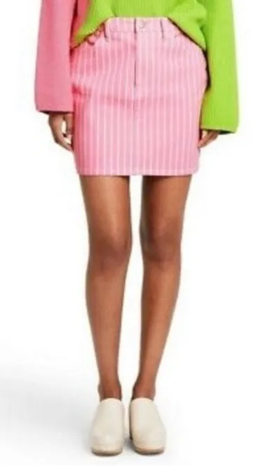 Victor Glemaud For Target Pin Stripe High Rise Mini Jean Skirt Size 6 Pink Denim With White Vertical Pin Stripes Aurora Pink, Cloud Striped Front And Back Pockets Belt Loops 98% Cotton/2% Spandex Machine Wash. Tumble Dry. Made In China New With Tags Color appearance may vary depending on monitor. Candy Stripes