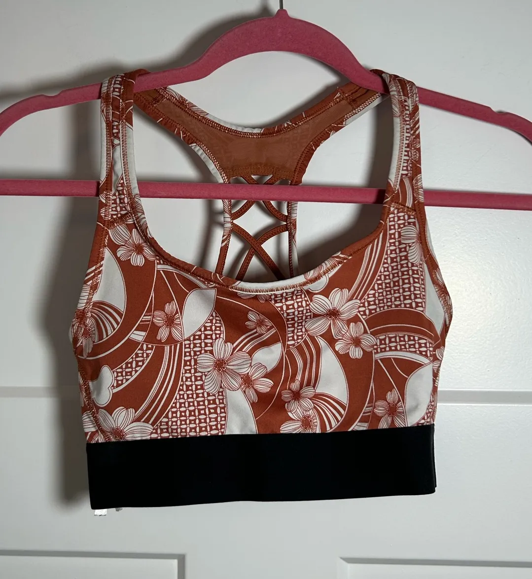 1 item. XS Victoria’s Secret sports bra. XS racerback sports bra/XS strappy sports bra. Cute tropical floral, burnt orange with white. Floral sports bra/tropical bra/island print sports bra. Nice condition, some light wear. Can bundle shipping with my other items. Ships fast! Some very light wear, great condition.