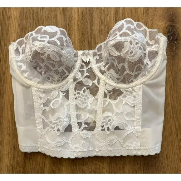 Vintage Victoria’s Secret White Floral Lace Corset Bra Bustier Size 34C Gold Label its in good vint... Show more