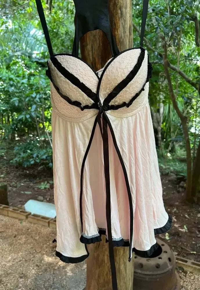 Victoria's Secret 36D Push Up Bra Lingerie Pink Babydoll Lace Teddy Gown. Excellent condition. Fro... Show more