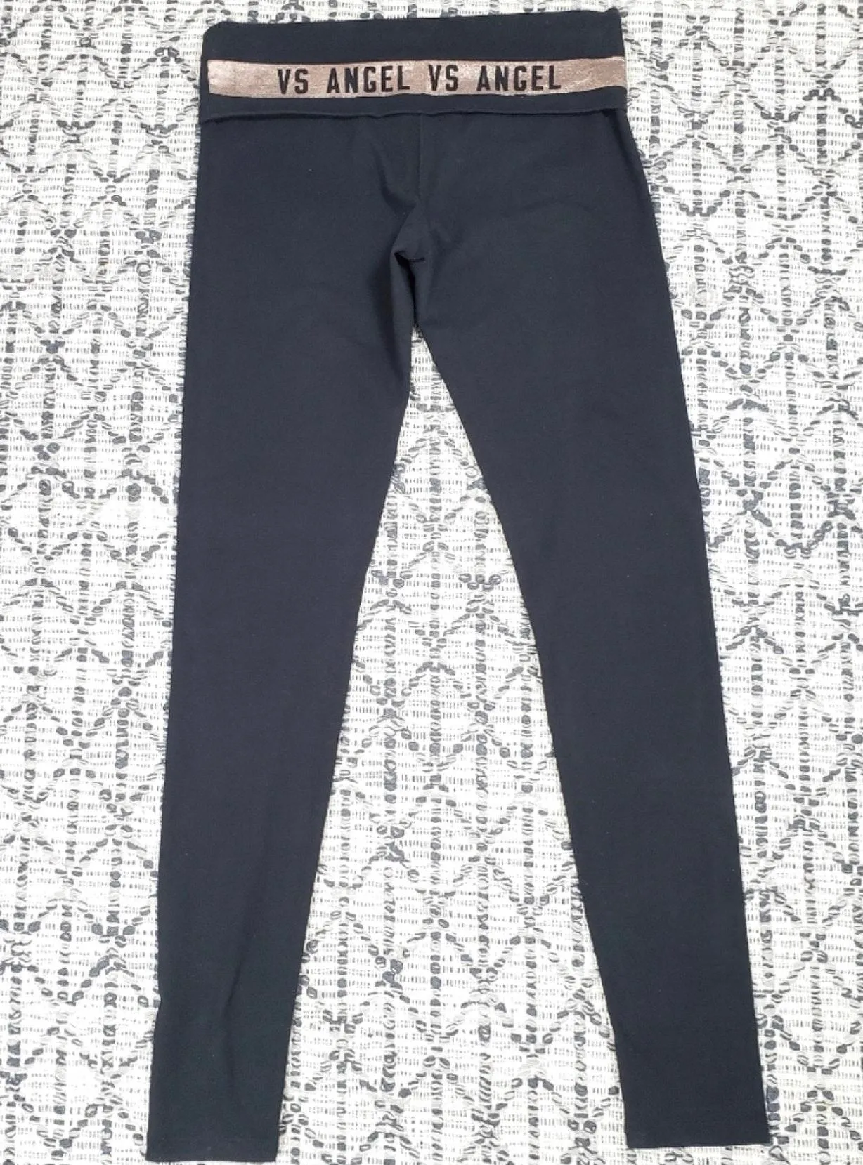 Angel Victoria's Secret black leggings back waist rose pink in size M Condition Like New.
