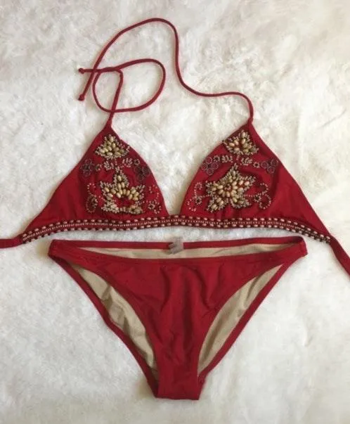 Victoria Secret Bikini, beaded, little fray on the bottoms but no piling, beads all there, size M :)... Show more