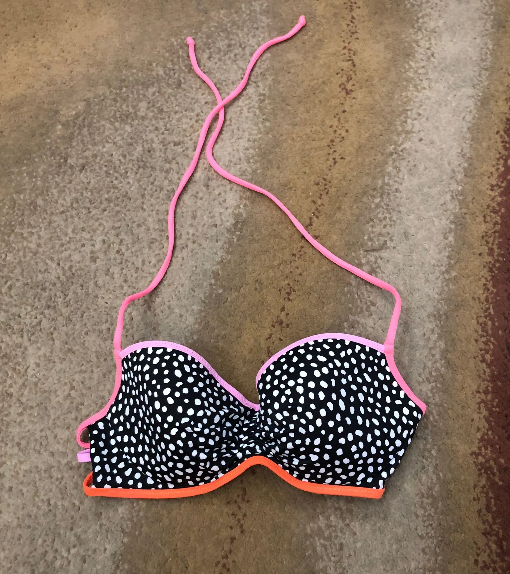 Black and white Polk a dot bikini top never worn with pink and orange lining - $31 - From Ashley
