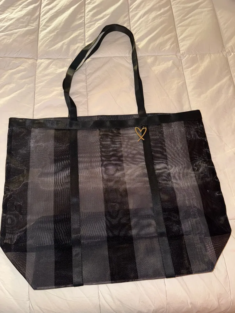 Victoria's Secret Black Mesh Tote with Gold Heart - $25 - From Maria