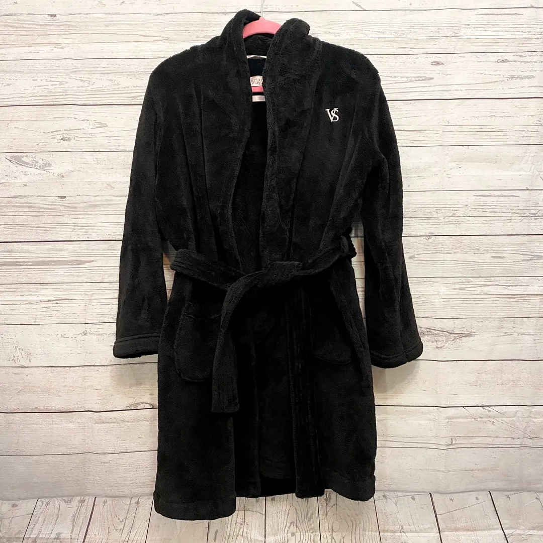 This robe is in great condition! Black plush, soft and comfy! Has two pockets on the fronts, and tie... Show more