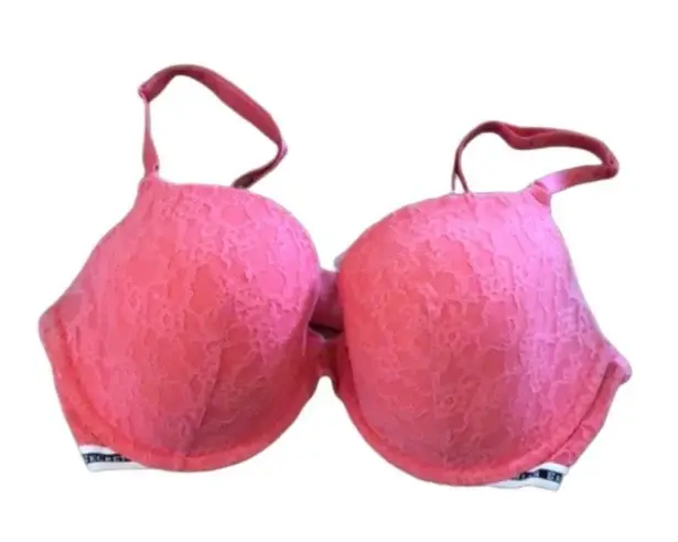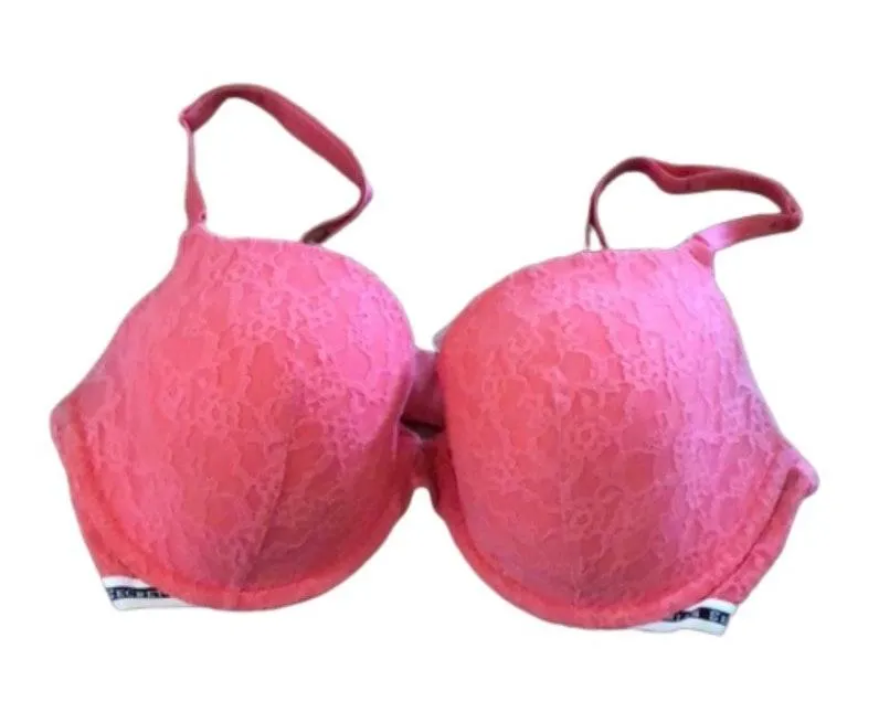 Used Victoria’s Secret bra. Lined perfect coverage. Size 36D. Peach in color. Lace detail all over.... Show more