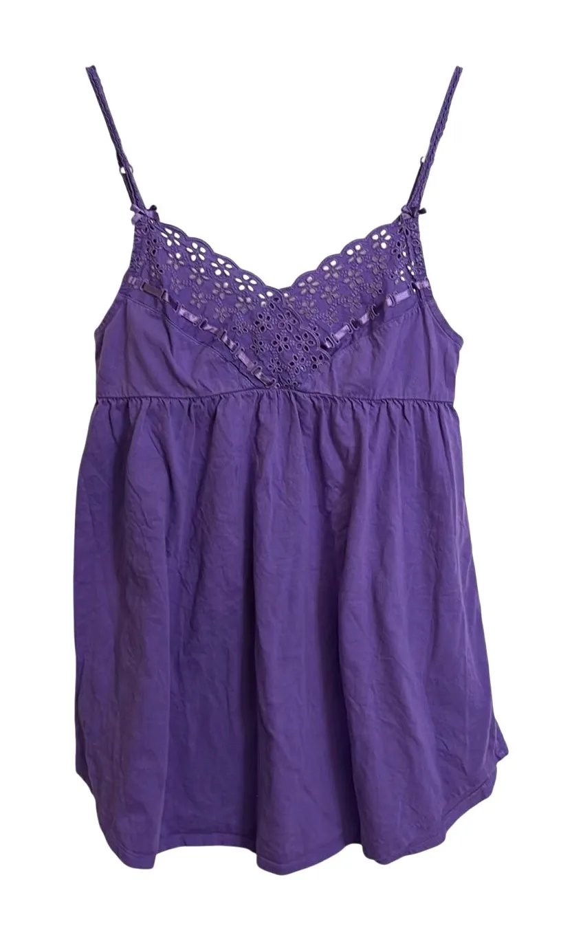 Victoria's Secret Cami Top Womens XS Purple Eyelet Lace Empire Waist Cotton Tank Y2K Victoria's Sec... Show more
