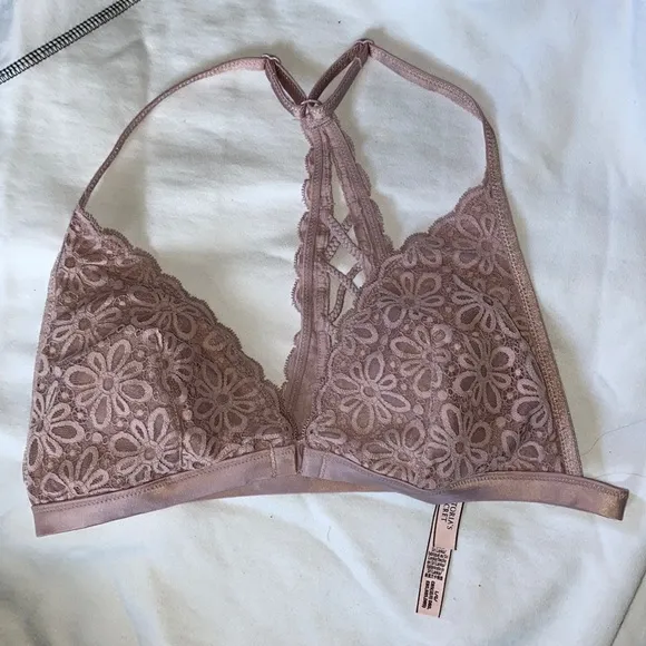 Beautiful mauve lace bralette. Fastens in the front with adjustable straps and removable pads, gorg... Show more